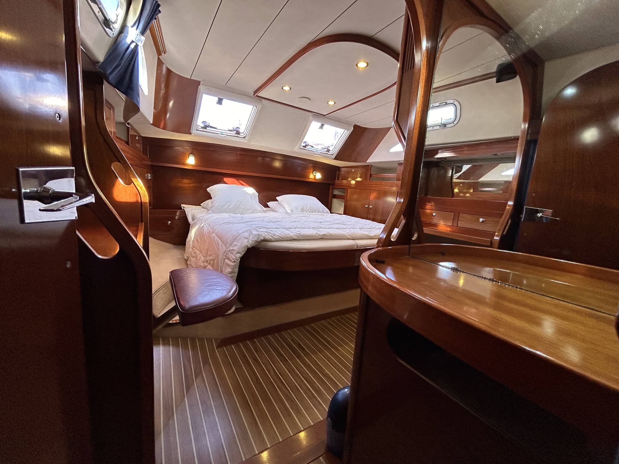 - Cabine arrière : Cabine propriétaire avec couchette double en ilot (2mx1.60m), Lit de 170cm, coffre fort, bureau/coiffeuse, penderie, TV écran plat, radio/CD